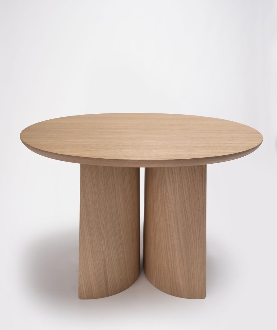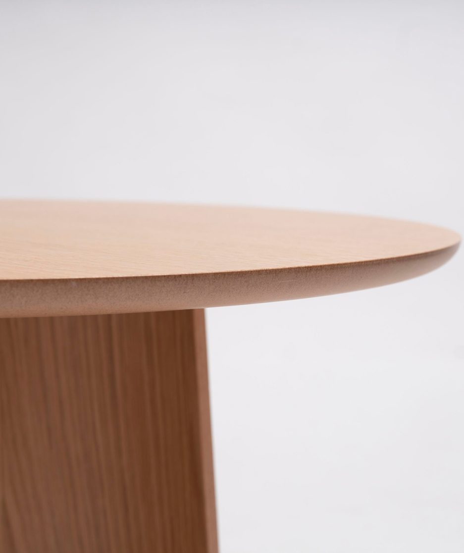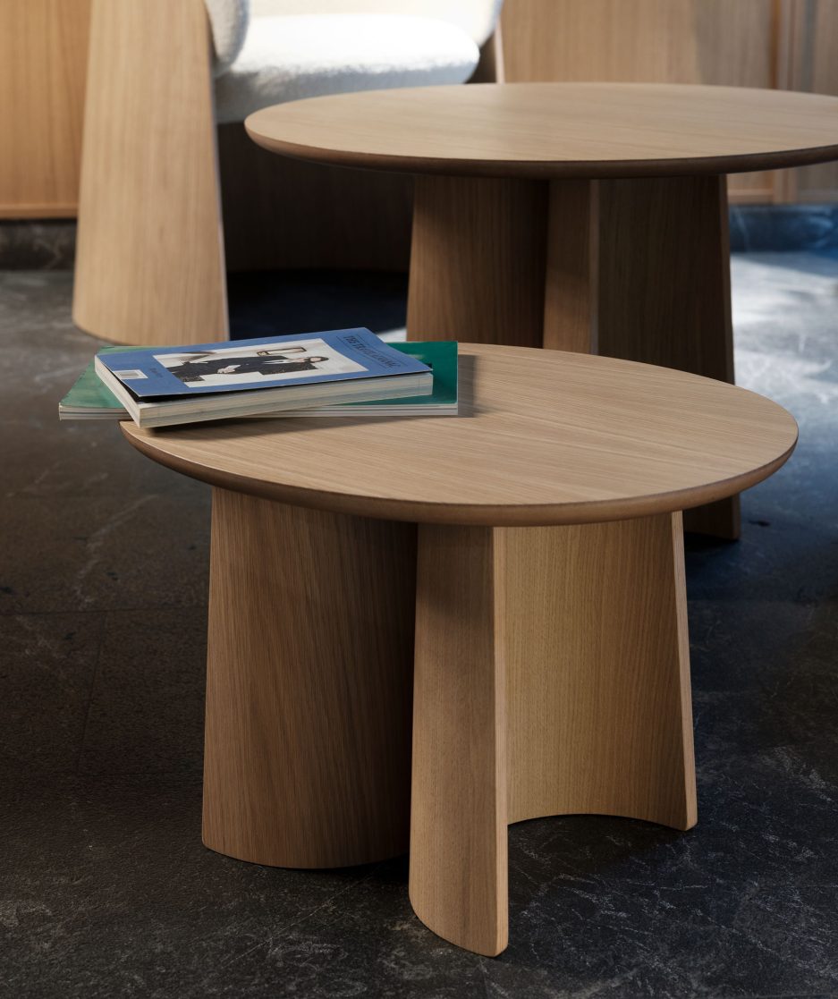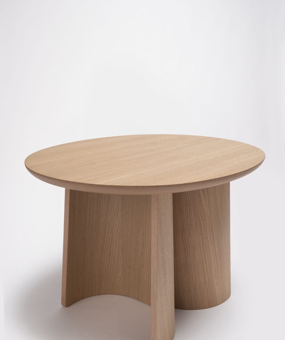 Artesanía y técnica se dan la mano en el diseño de las mesas Ginger. Disponible en distintas alturas, esta mesa se distingue por la compleja curvatura de la madera de sus patas y la redondez de las formas de la encimera haciendo honor a la sensibilidad por los materiales, colores y texturas de su diseñador Sebastian Herkner.